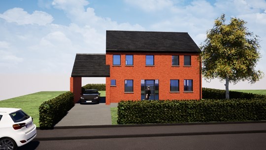 Découvrez ce magnifique projet de maison 4 façades, mitoyenne par le carport.